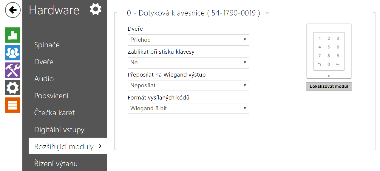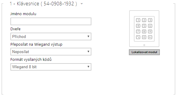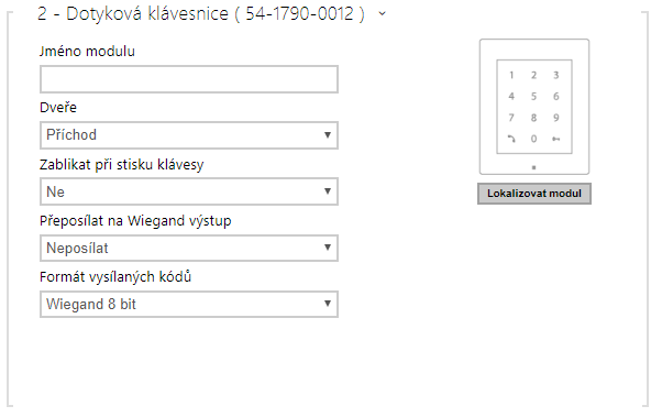 - Název modulu – nastavuje název modulu. Název modulu se používá při logování událostí z modulu dotykové klávesnice.