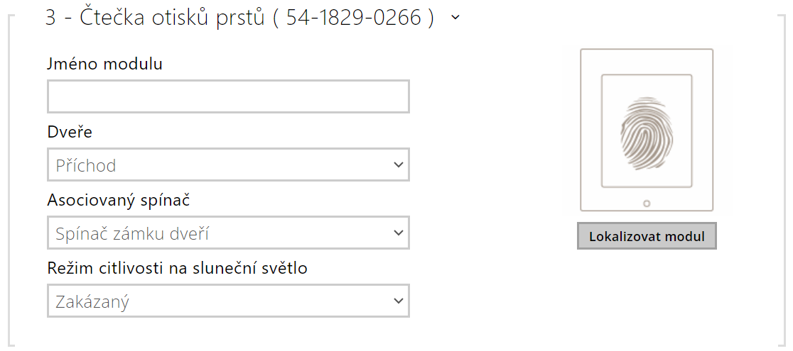 - Název modulu – nastavuje název modulu. Název modulu se používá při logování událostí čtečky otisků prstů.