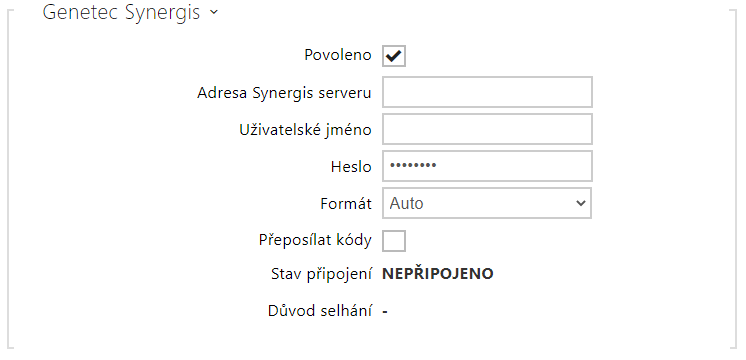 - Povoleno – povoluje spojení s externím bezpečnostním systémem Genetec Synergis.