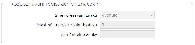 - Směr ořezávání znaků – volí, zda je povoleno ořezávání rozpoznaných registračních značek. Určete, z jakého směru může být ořezávání zkoušeno.