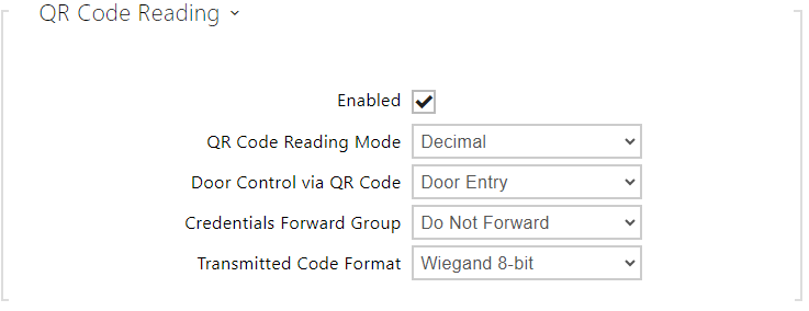 - Enabled – enable/disable QR code reading using the device camera. If QR code reading is enabled, it is possible to enter PIN codes and individual switch codes longer than ten digits by showing the QR code to the device camera.