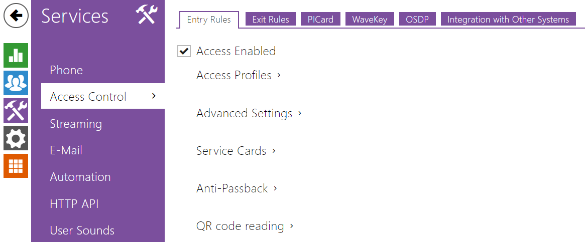 - Access Enabled – enable access in a direction (entry, exit). If access is disabled, the door cannot be opened from the selected side.