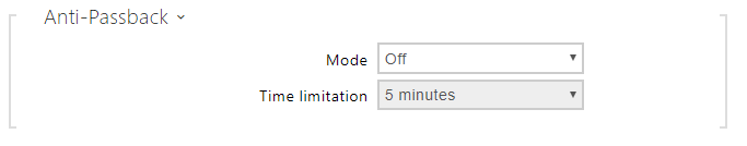 - Time Limitation – select an Anti-Passback timeout during which the user cannot re-enter an area using the given authentication method (card, code, etc.) in the same direction.
