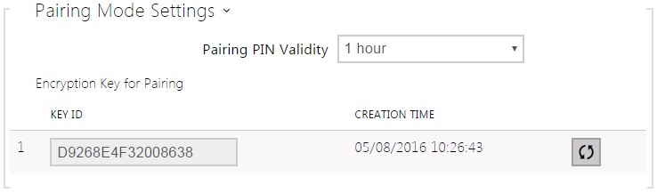 An encryption key other than that used for communication after pairing is used in the pairing mode for security reasons. This key is generated automatically upon the intercom first launch and can be re-generated any time later.