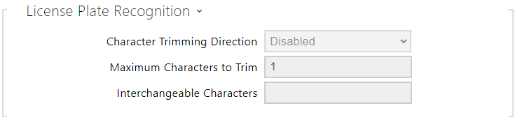 - Character Trimming Direction – choose whether trimming of recognized license plates is permitted, and specify the direction from which trimming may be attempted.