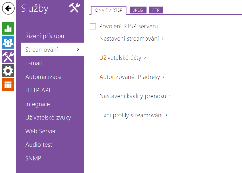 - Povolení RTSP serveru – povoluje funkci RTSP serveru v zařízení.