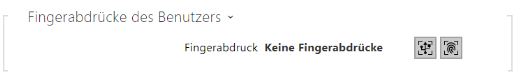 - Fingerabdrücke – zeigt die Zahl der eingestellten Fingerabdrücke an, man kann bis zu 2 verschiedene Fingerabdrücke einstellen. Dieser Abschnitt wird nur in der Anwesenheit des Moduls des Biometrischen Scanners angezeigt.