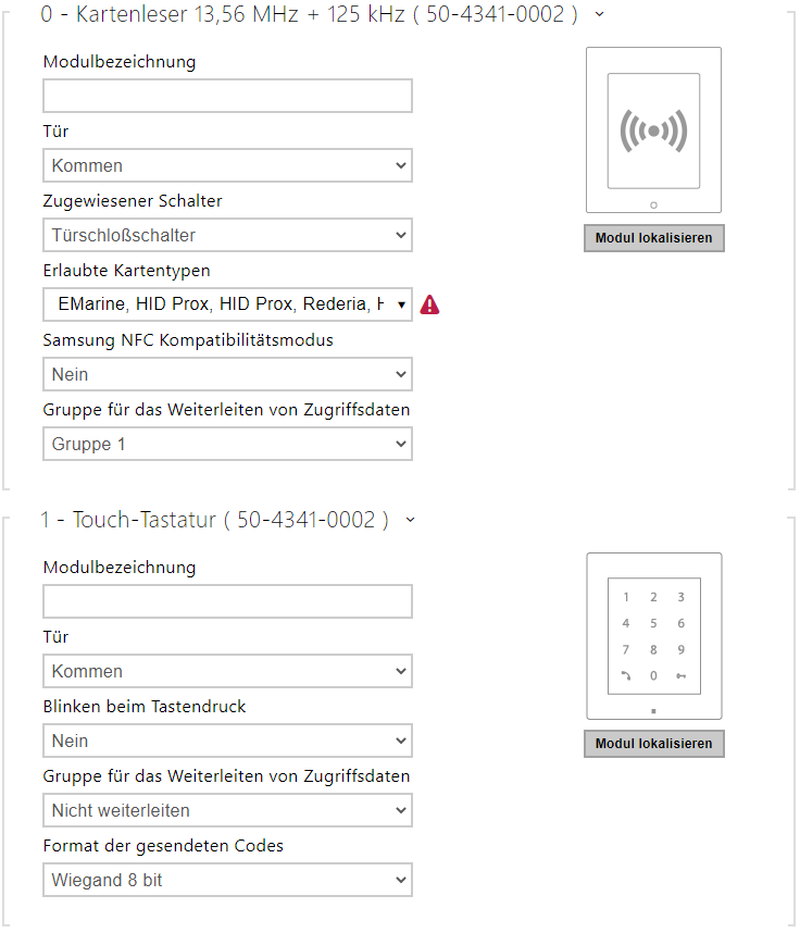 - Für das schnellere Lesen der Zutrittskarten empfehlen wir, in der Einstellung des jeweiligen Moduls nur die Kartentypen auszuwählen, die der Nutzer verwendet.