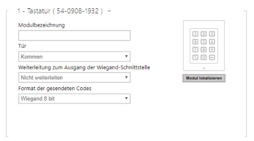 - Weiterleitung zum Ausgang der Wiegand-Schnittstelle – Stellt die Gruppe der Wiegand-Ausgänge ein, an die alle betätigten Tasten gesendet werden.