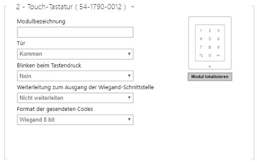 - Modulbezeichnung – Stellt den Modulnamen ein. Die Modulbezeichnung wird beim Loggen der Ereignisse vom Touch-Tastatur verwendet.
