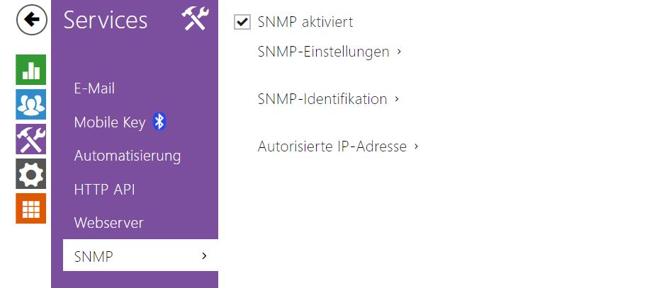 Die 2N Zutrittseinheiten können integrieren die Funktionalität, die die entfernte Aufsicht der Zutrittseinheiten können im Netz mittels des SNMP-Protokolls ermöglicht.