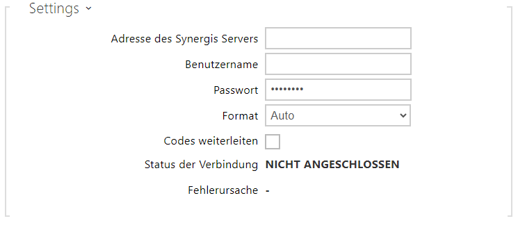 Adresse des Synergis Servers– IP-Adresse oder der Domainname des Synergis-Servers.