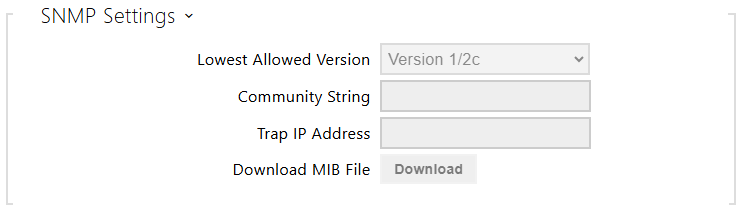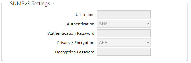 - IP Address – enter up to 4 valid IP addresses for SNMP agent access to block access from other addresses. If the field is empty, the device may be accessed from any IP address.