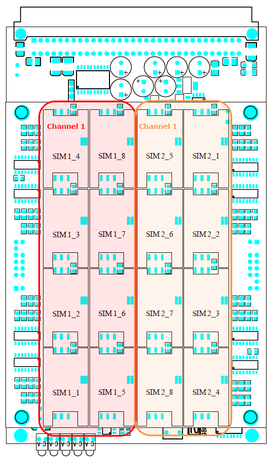 Figure: SIM Card Positions on 8SIM/Channel Boards