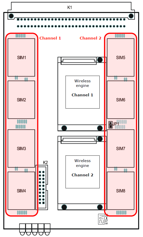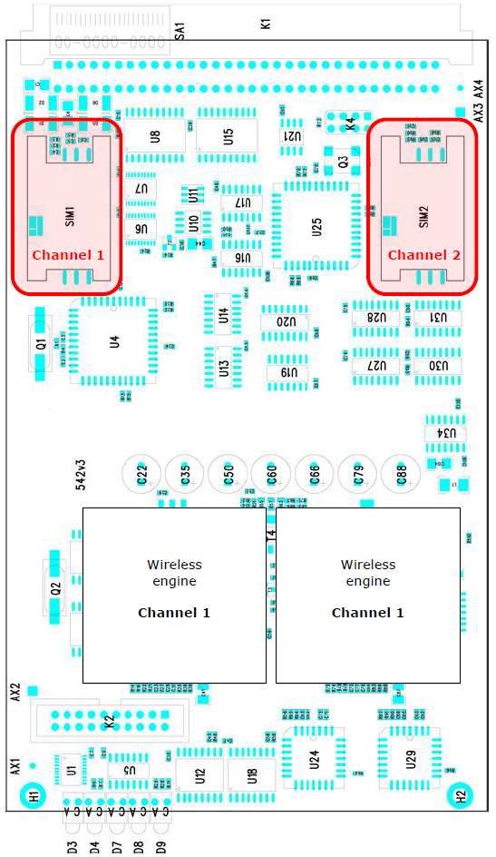 Figure: SIM Card Positions on 1SIM/Channel Boards