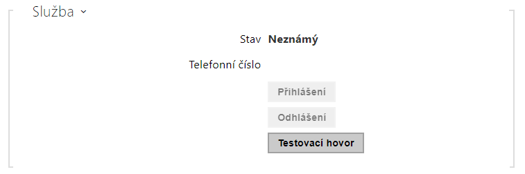 - Testovací hovor – vyvolá dialogové okno s možností provést testovací hovor na zvolené telefonní číslo.