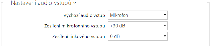 - Výchozí audio vstup – umožňuje nastavit výchozí audio vstup (mikrofon, linkový vstup nebo vstup audio modulu), který bude použit pro telefonní hovory a streamování audia.