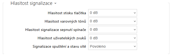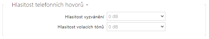 - Hlasitost volacích tónů – nastavuje hlasitost vytáčecího, vyzváněcího a obsazovacího tónu. Toto nastavení se nepoužije, pokud jsou tóny volby generovány externě. Hodnota je relativní k celkové hlasitosti.