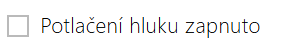 - Potlačení hluku zapnuto (dostupné pro zařízení s procesorem ARTPEC, např. IP Style, IP Verso 2.0, IP Force 2.0, ....) – zapne funkci potlačení šumu.