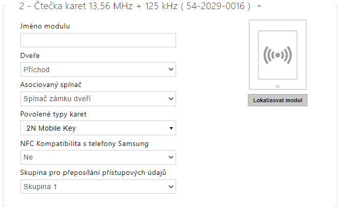 Konfigurace modulu čtečky karet 13,56 MHz + 125 kHz