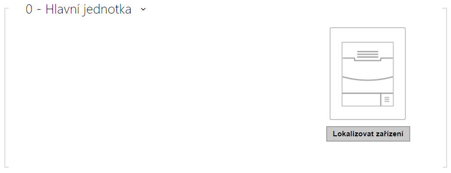 - Připojené rozšiřující moduly jsou zobrazeny v pořadí odpovídajícím jejich propojení. Moduly připojené dále od základní jednotky jsou zobrazeny v seznamu níže. Pokud je k interkomu připojeno více modulů stejného typu, může být obtížné přiřadit nastavení ke konkrétnímu modulu. V takovém případě je možné připojené moduly identifikovat pomocí tlačítka Lokalizovat modul. Po stisku tlačítka modul několikrát krátce zabliká.