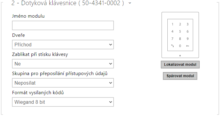 - Název modulu – nastavuje název modulu. Název modulu se používá při logování událostí z dotykové klávesnice.