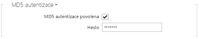 - MD5 autentizace povolena – povoluje použití autentizace zařízení v síti pomocí protokolu 802.1x EAP-MD5. V případě, že vaše síť 802.1x nepodporuje, tuto funkci nezapínejte. V opačném případě se interkom stane nedostupným.