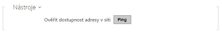 - Ověřit dostupnost adresy v síti – slouží k ověření dostupnosti dané adresy v síti jako příkaz „Ping“ v běžných operačních systémech. Po stisknutí tlačítka „Ping“ se zobrazí dialog, ve kterém je možno zadat IP adresu nebo doménové jméno a tlačítkem „Ping“ odeslat zkušební data na tuto adresu. Pokud je zadaná IP adresa nebo doménové jméno neplatné, je zobrazeno upozornění a tlačítko „Ping“ je neaktivní, dokud není zadávaná adresa platná.