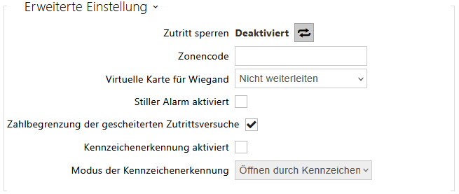 - Kennzeichenerkennung aktiviert – Ermöglicht die Nutzung von Kennzeichen als Zutrittsberechtigung.
