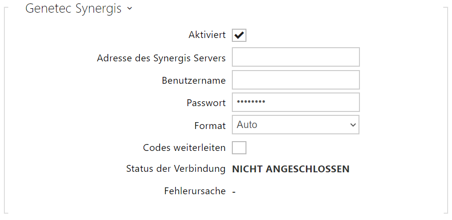 - Aktiviert – erlaubt die Verbindung mit dem externen Sicherheitssystem Genetec Synergis.