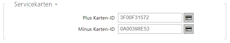 - Minus Karten-ID – ID der Servicekarte, die für das Entfernen von der Liste der installierten Karten bestimmt ist. Die Karten-ID ist die Sequenz von 6–32 Zeichen aus der Menge 0–9, A–F.