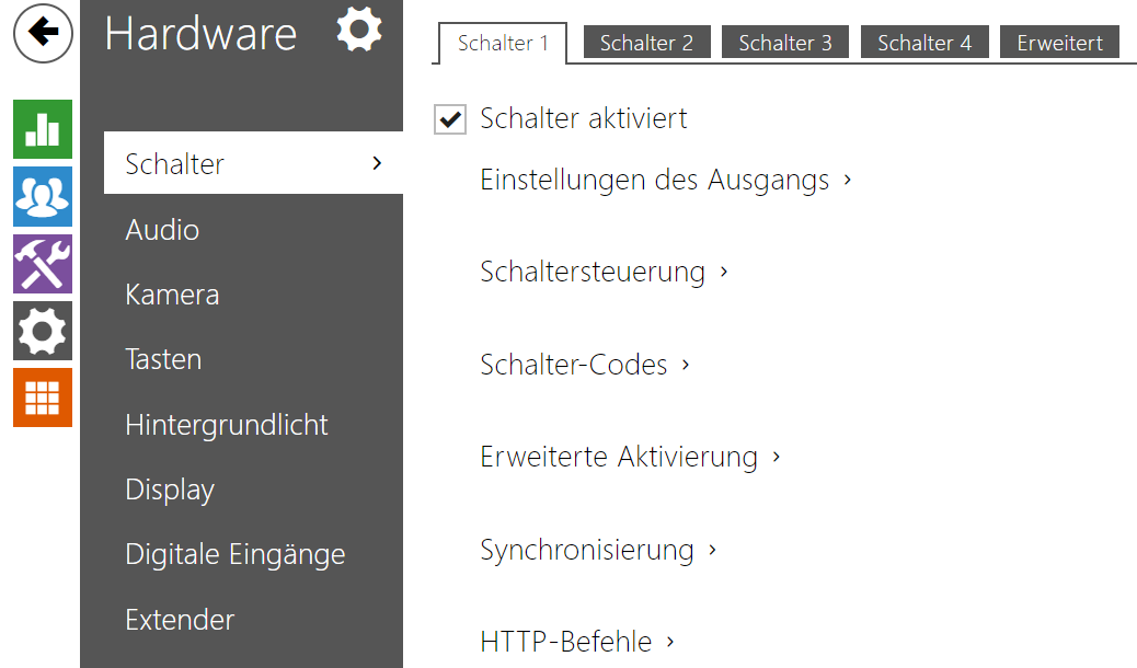 Die 2N IP Interkoms ermöglichen bis zu 4 (kann sich bei verschiedenen Modellen unterscheiden) unabhängige Schalter zu konfigurieren, die man für beliebigen Zweck benutzen kann.