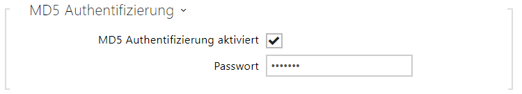 - MD5 Authentifizierung aktiviert – erlaubt die Anwendung der Anlagenauthentifizierung im Netz mittels des Protokolls 802.1x EAP-MD5. Aktivieren Sie diese Funktion nicht, wenn Ihr Netz nicht 802.1x unterstützt. Im anderen Fall wird Ihr Interkom unerreichbar.