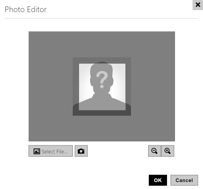 - Photo – load the user photo. Click the photo adding frame to display the Photo editor to load a photo from a file or create a user photo using an integrated camera. The supported photo formats are .jpg, .png and .bmp. This function is only available in display-equipped models: 2N IP Style, 2N IP Verso and 2N IP Vario.