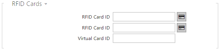- RFID Card ID – set the user access card ID: 6–32 characters including 0–9, A–F. Each user can be assigned up to two access cards. When a valid card is tapped on the reader, the switch associated with the card reader gets activated. If the double authentication mode is enabled, the switch can only be activated using both a card and numeric code.