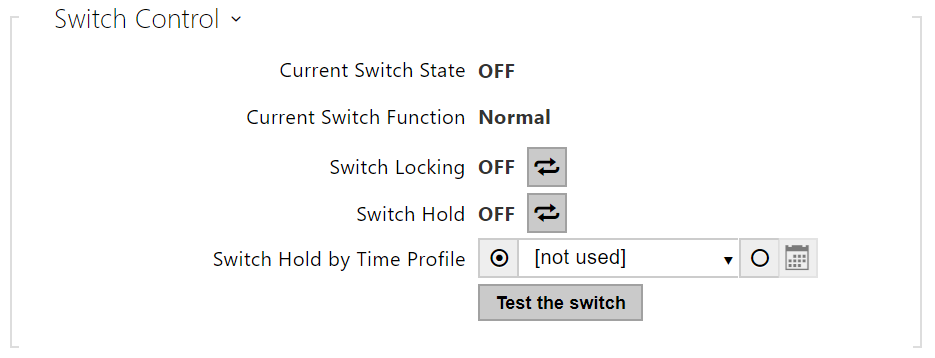 - Switch Mode – set the monostable/bistable mode for the switch. The switch is switched off after a timeout in the monostable mode and switched on with the first activation and off with the next activation in the bistable mode.