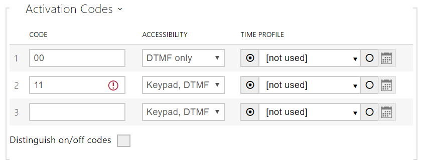 - Distinguish on/off Codes – set whether codes on odd rows (1, 3, ...) will be used for switch activation, and codes on even rows (2, 4, ...) for deactivation in bistable mode.