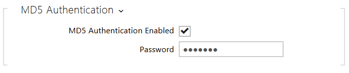 - MD5 Authentication Enabled – enable authentication of network devices via the 802.1x EAP-MD5 protocol. Do not enable this function if your LAN does not support 802.1x. If you do so, the intercom will become inaccessible.