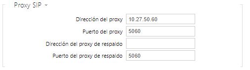 - Dirección de proxy de respaldo – dirección IP o nombre de dominio de proxy SIP de respaldo. La dirección se utilizará en el caso de que el proxy principal no responda a las peticiones.