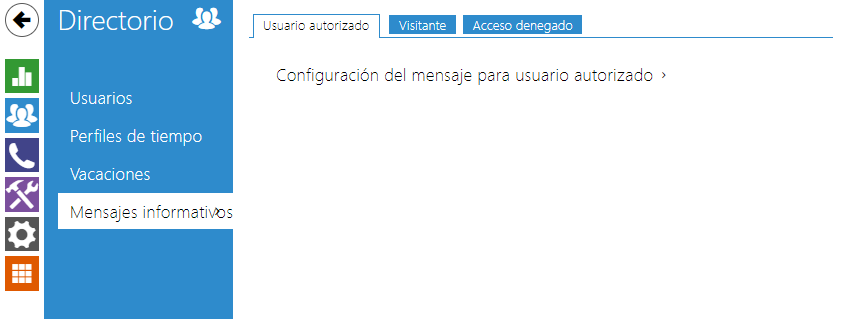 El la solapa de Usuarios es posible configurar el mensaje individual para cada uno de los usuarios, ver. 5.2.1 Usuarios.Acceso denegado – este mensaje aparece cuando el dispositivo rechaza el acceso.