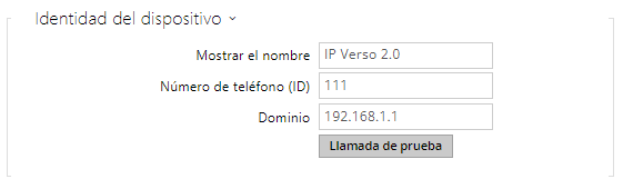 - Dominio – configura el nombre de dominio del servicio en el que se registra el intercomunicador. Normalmente coincide con la dirección SIP proxy o con el Registrador.