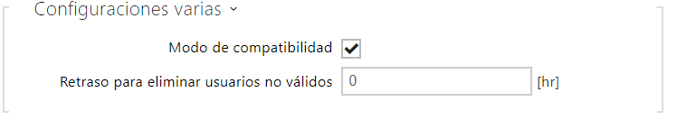 - Eliminar los usuarios no válidos con retardo – configura el retardo después del cual los usuarios con el acceso no válido, y con eliminación automática habilitada, serán eliminados del directorio del dispositivo.