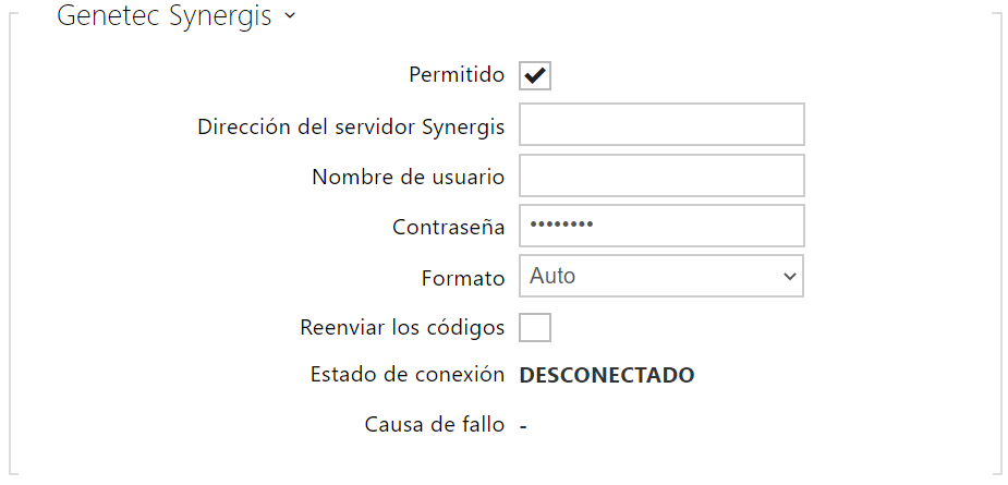 - Permitido – permite la conexión con el sistema de seguridad Genetec Synergis externo.