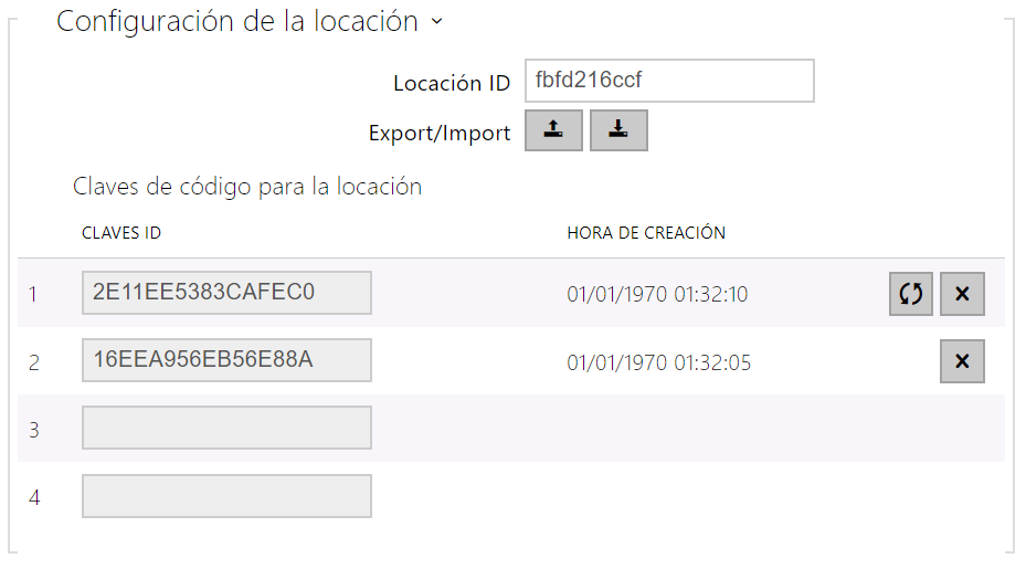 - ID de la localización – identificador inconfundible de la localización dentro de la cuál está vigente el conjunto de las claves de codificación configuradas.
