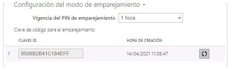 En el modo de emparejamiento se utiliza, por razones de seguridad para proteger la comunicación, una clave distinta a la utilizada durante la comunicación tras el emparejamiento. Esta clave se genera automáticamente durante el primer arranque del intercomunicador y se puede volver a generar en cualquier momento.