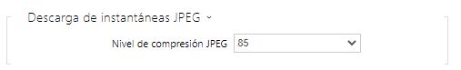 - Nivel de compresión JPEG – configura el nivel de compresión JPEG dentro del rango (1–99). El valor recomendado es 85. Este parámetro afecta el tamaño y la calidad de la imagen.