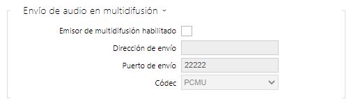 RTP/UDP-Multicast | Multicast no controlado de los paquetes RTP. Compatible solo con audio (G.711). Ver la solapa Multicast más abajo. |