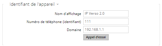 - Domaine – paramétrer le nom de domaine du service avec lequel l’interphone est enregistré. Normalement, il est identique au proxy SIP ou à l’adresse du registrar.