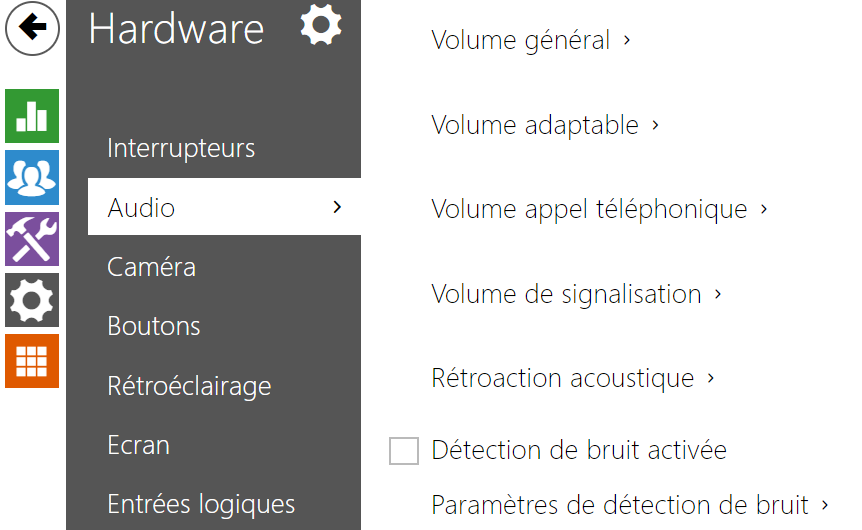 Seul les modèles 2N SIP Speaker Horn, 2N IP Audio Kit et 2N IP Video Kit permettent de configurer le gain du microphone.