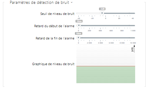 - Seuil du niveau de bruit – définissez le seuil de bruit du microphone pour le réglage de l'alarme.